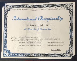 | October 2, 2016 New International Champion - AKC Ch/Int'l Ch Mardi Gras Je Ne Sais Quoi |