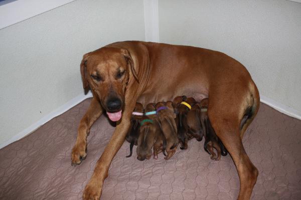 | Mardi Gras Rhodesian Ridgebacks and Ridgebacks by Kat proudly present the 10 beautiful babies born March 16, 2016 from a breeding between AKC GrCH/Int'l Ch Mardi Gras C'est La Vie and AKC GrCH DC Toroa's Big Bang, SC |