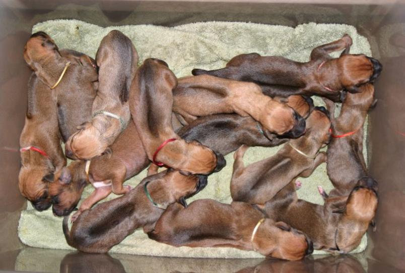 | 14 beautiful babies of Ch Majuna Lazer Tag by Wyndrunhr, SC NJP AX CDX RE NAP OJP AXJ NF CGC TT VCX of Rottn' Ridge Rhodesian Ridgebacks |